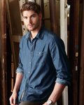 These 100% cotton denim jeans with antique brass rivets and decorative seams help present a casual, down-home image.