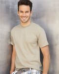 - 5.3 oz., pre-shrunk 100% cotton (Blackberry, Heather Military Green, Heather Red, Heather Sapphire, Lilac, Midnight, Russet, Sunset and Tweed are 50/50 cotton/polyester. Antique Cherry Red, Antique Irish Green, Antique Jade Dome, Antique Orange, Antique Sapphire and Sport Grey are 90/10 cotton/polyester. Ash Grey is 99/1 cotton/polyester.)