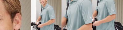 A stylish textured front tees off with a cool mesh back for nine holes of comfort.