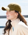 Contrast color trim adds personality to this soft peach washed cotton cap with pre-curved visor.