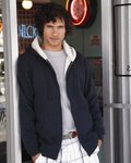The hooded sweatshirt gets even warmer with a contrast color 5.75 oz. sherpa lining.
