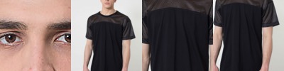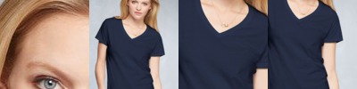 - Double-needle stitched sleeves, bottom hem, and front neck
