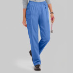 Pull-on style with covered elastic waistband. Two patch pockets and one cell phone pocket. Reinforced seams at stride and inside leg for strength. 65% Polyester/ 35% Cotton Traditional rise. Relaxed hip and thigh. Straight leg.