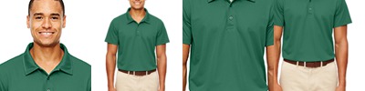 4.42 oz./yd2 / 150 gsm, 100% polyester snag-protection piqu with moisture-wicking, anti-microbial, UV protection performance; Integrated collar stays; Side slits; three-button placket with dyed-to-match buttons;