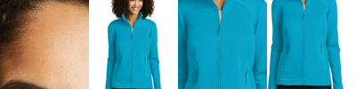 Made for movement, this sophisticated, stretch-infused twill fleece jacket has a smooth face and brushed fleece backing. Tonal welding details at the pockets and streamlined tailoring give it a refined look for indoor and outdoor uses. Beautifully shaped, feminine collar. Molded reverse coil zippers. Front zippered pockets. Contrast Eddie Bauer heat transfer logo on the right hem. Made of 8.3-ounce, 94/6 poly/spandex fleece with an anti-pill finish.