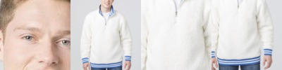 - Coverstitched self fabric textured loop cuffs and bottom band