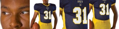 - Two color jersey side inserts, sleeve cuffs and V-neck