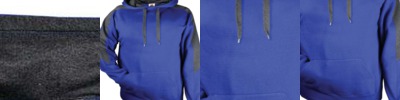- 9 oz./yd² (US) 15 oz./L yd (CA), 80/20 ring-spun cotton/polyester blend with 100% cotton face, 30 singles
