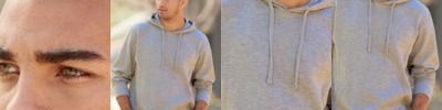 - 2x1 rib knit side panels, cuffs, pocket opening and hem