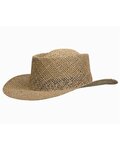 A nod to the west in Moroccan straw, this fitted hat is stained for a distressed look.