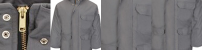- Two-piece, insulated, stand-up collar with concealed snap closure
