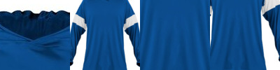 - Body color raglan long sleeves with 3" contrast-color inserts on upper sleeve