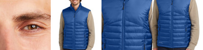 Minimal bulk meets maximized performance in this quilted vest that is built for your cold-weather adventures. Exposed, molded zippers with Eddie Bauer logo pulls. Zippered hand pockets. Contrast Eddie Bauer heat transfer logo on right hem. Made of 100% polyester shell and lining. 3-ounce, 100% polyester fill. Durable water-repellent (DWR) finish with a PU coating.