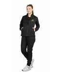 * Lightweight, soft-knit * Solids, 89% recycled polyester/11% spandex * Heathers, 45% recycled polyester/44% polyester/11% spandex * Wicks moisture * Ladies' fit * Tag-free label * Covered elastic waistband with outside drawcord * Front pockets with inner valuables pocket inside left pocket * Back pocket with zipper * Tapered leg