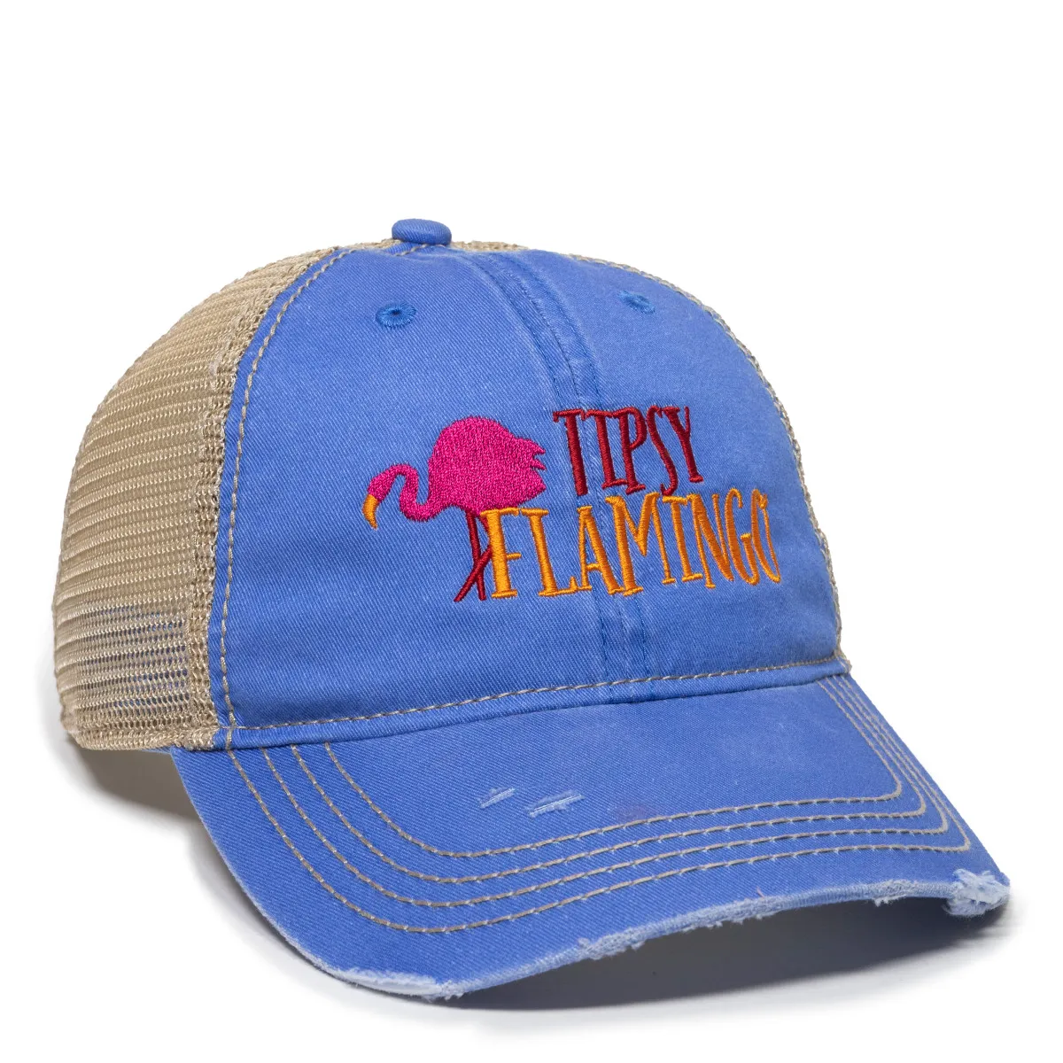 Low Crown ,Mesh Back,Pigment Dyed Cotton Twill Front Panels,Tea-Stained Mesh Back Panels,Frayed Pre-Curved Visor,Unstructured,Plastic Snap Closure,Contrast Heavy Construction Stitch,Tea Stain is Unique to Each Cap, Consistency May Vary,Heavy Decorative Stitch on Crown and Visor