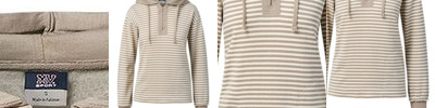 - 10 oz./yd² (330 gm) 70/30 ring-spun cotton/polyester blend 3-end fleece with 100% cotton face yarn, 32 singles