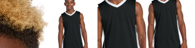 Color side is 100% polyester propelit micromesh wicking knit * White side is 100% polyester wicking knit * Wicks Moisture * Outside locker label * V-neck collar * Contrast color inserts and piping * Fully reversible * Each layer hemmed separately for easy embellishment * Designed to be NFHS compliant