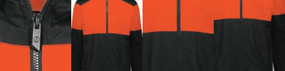 88/12 polyester/elastane Coolcore Four-way stretch Three-panel crossover hood Set-in sleeves with rolled forward shoulder seam