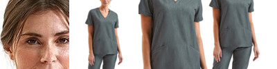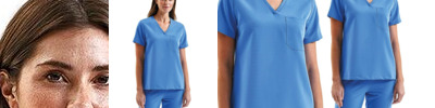 • V-neck style with left chest pocket with combined mobile and pen pocket