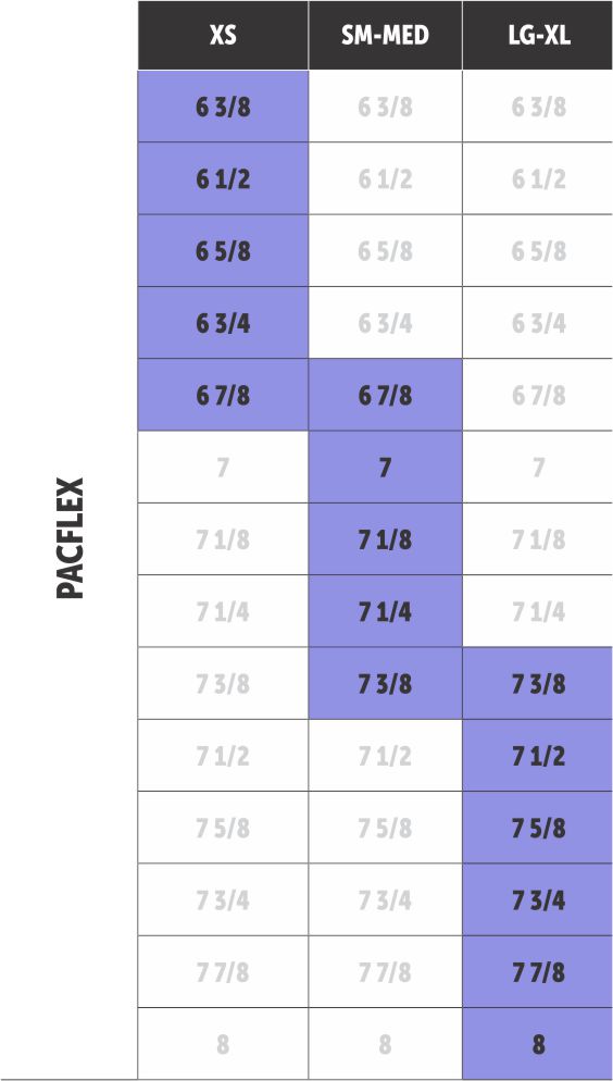 | Body Width | 20.25 | 21.75 | 23.25 | 24.75 | 26.25 | 27.75 | 29.25 |